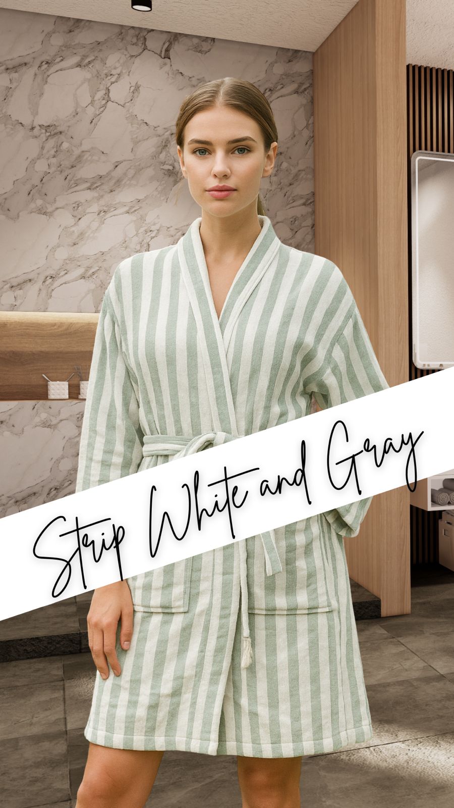 Refresh your loungewear with the Elegant Striped Bathrobe, crafted from 100% premium cotton for a perfect balance of softness, breathability, and everyday functionality. With its vibrant green and blue stripes, this robe combines modern style with timeless comfort.